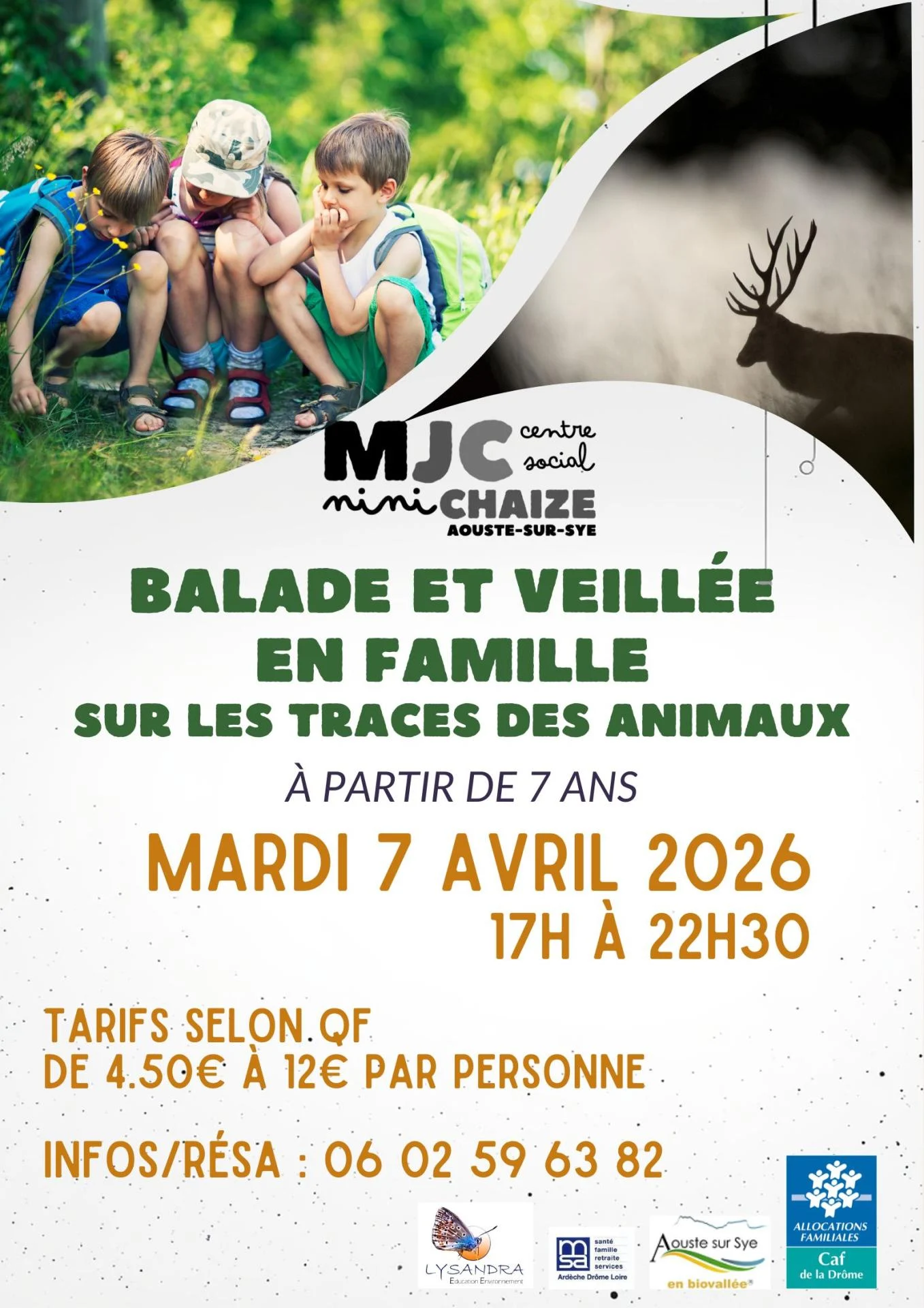 Balade et veillée en famille "sur les traces des animaux" mardi 7 avril de 17h à 22h30