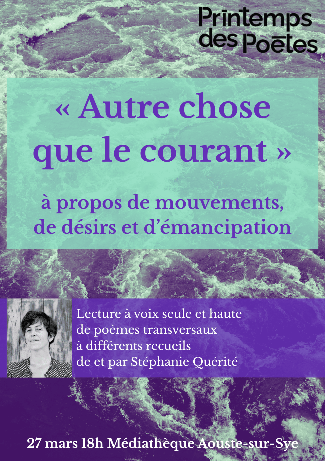 Lecture à voix seule et haute de poèmes transversaux à différents recueils, de et par Stéphanie Quérité.