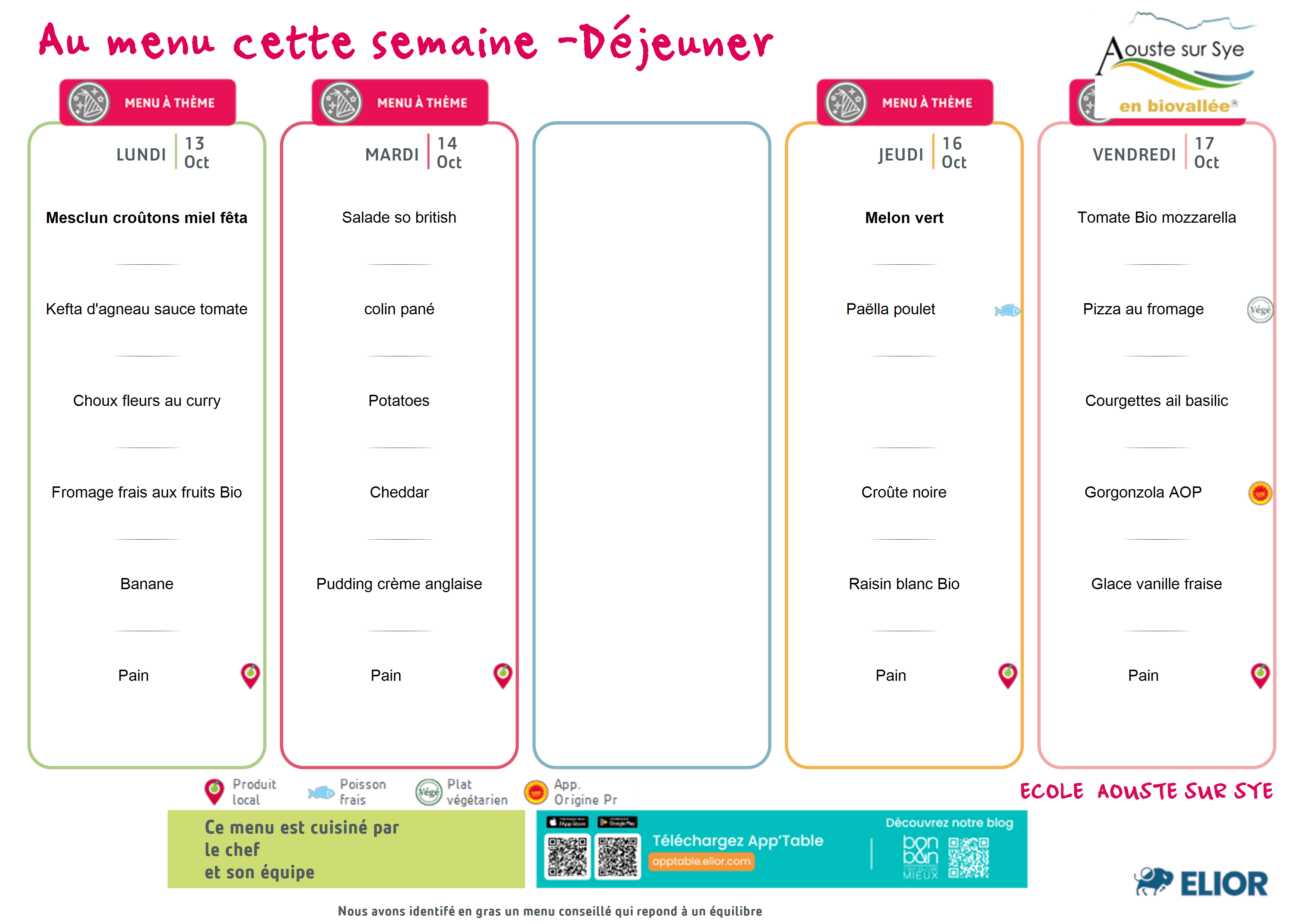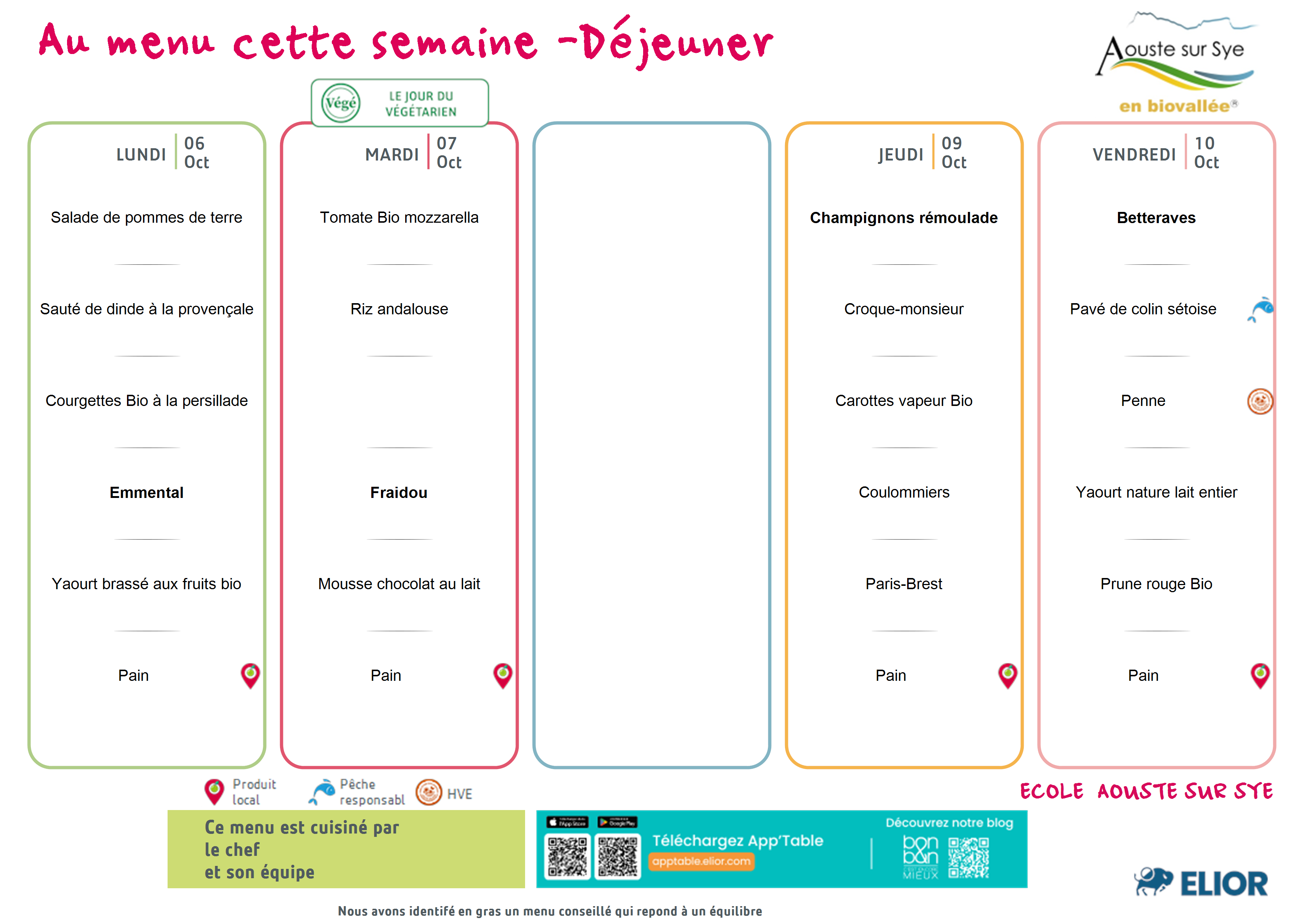 ► CONSULTER LE MENU DE LA CANTINE: Menus du 6 au 10 oct (654.81 Ko) Menus du 13 au 17 oct